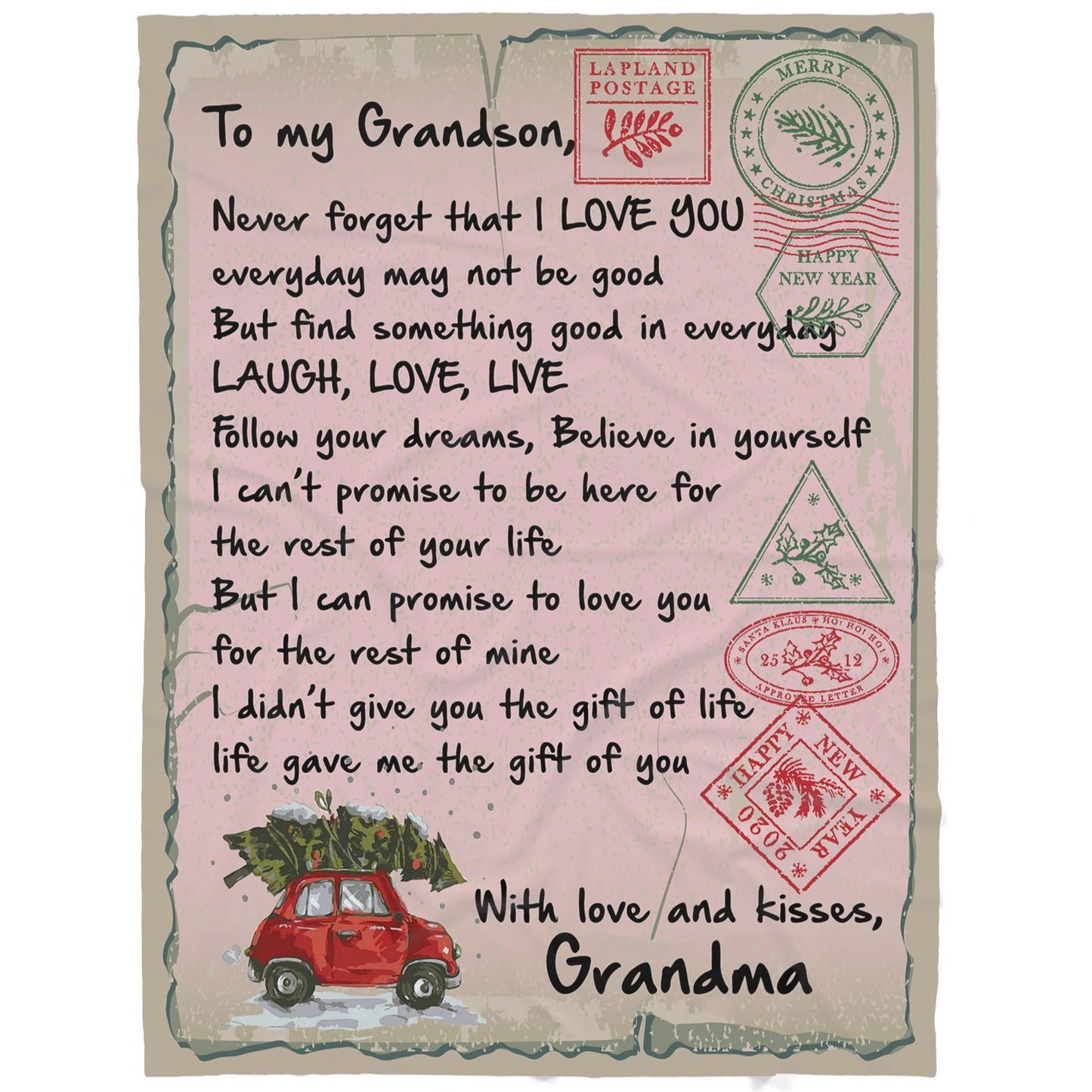 Blanket Christmas Gift For Grandson, Gifts For Grandson From Grandma, I Love You