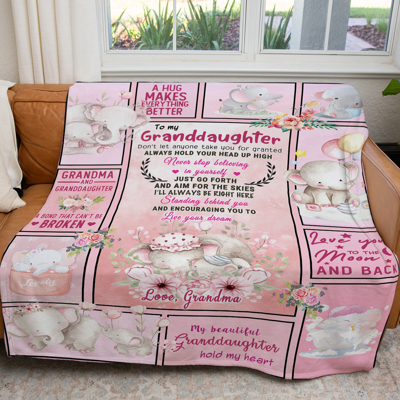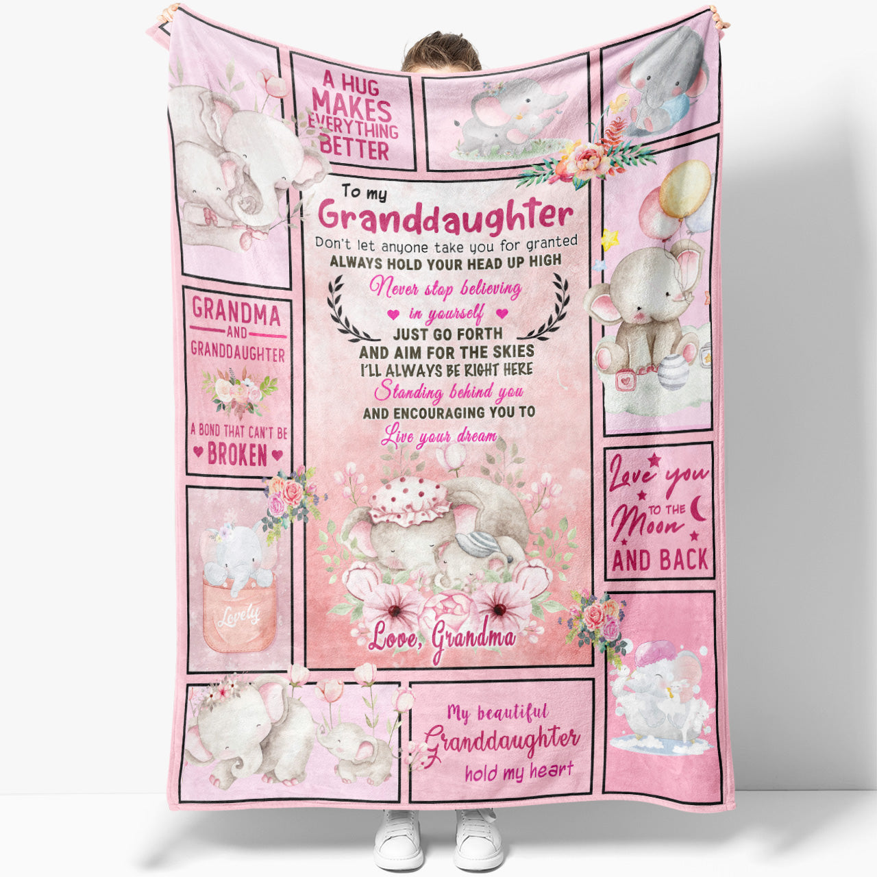 Pink Elephant Blanket Gift Ideas For Granddaughter, Love You to The Moon and Back Blanket Gift