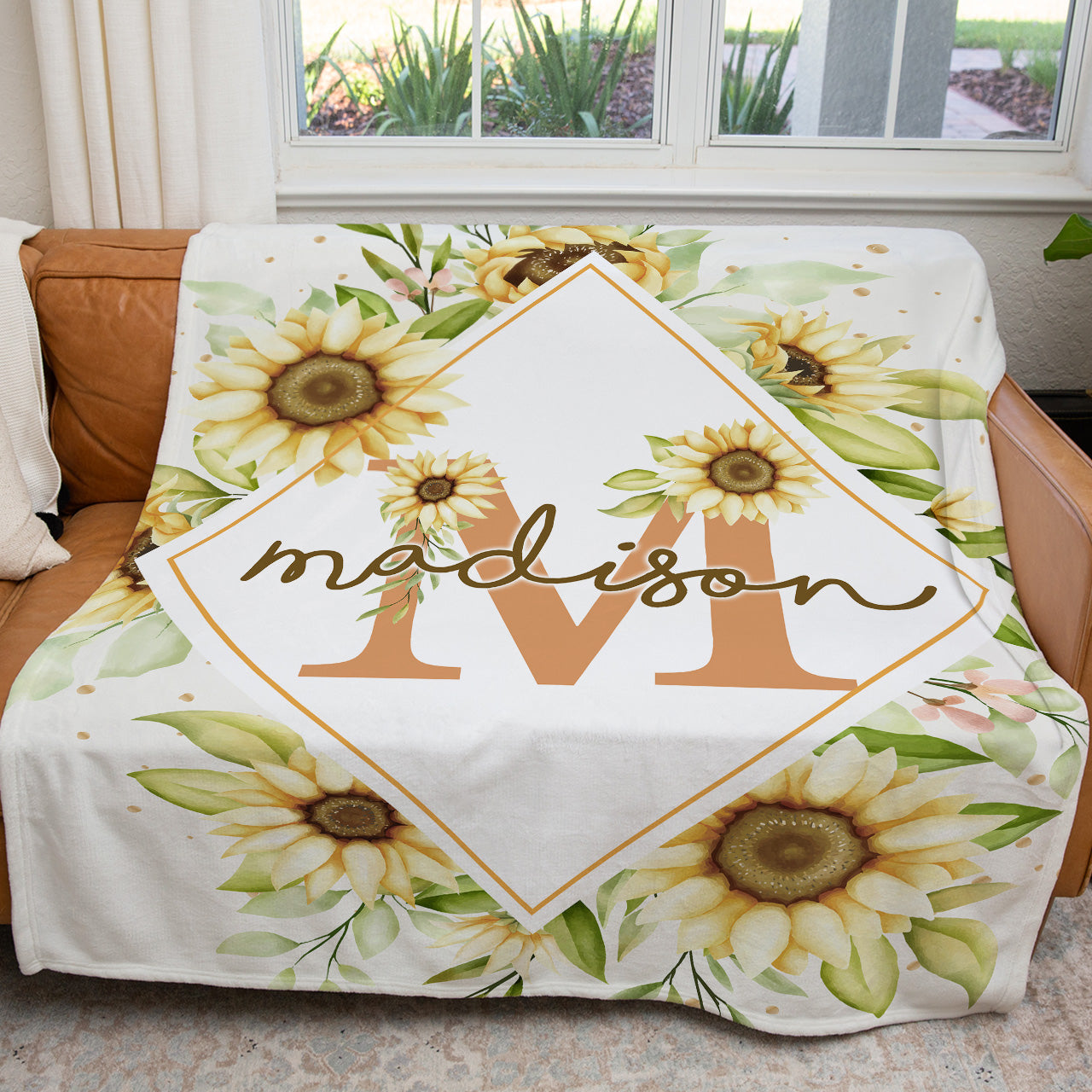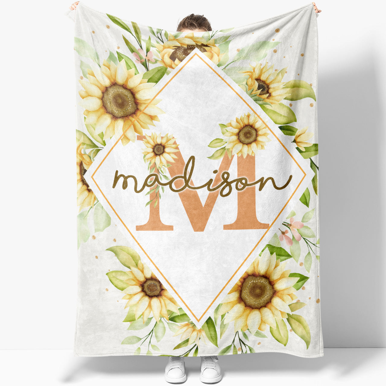 Personalized Name Sunflower Blanket, Custom Blanket with Name Birthday Gift Ideas