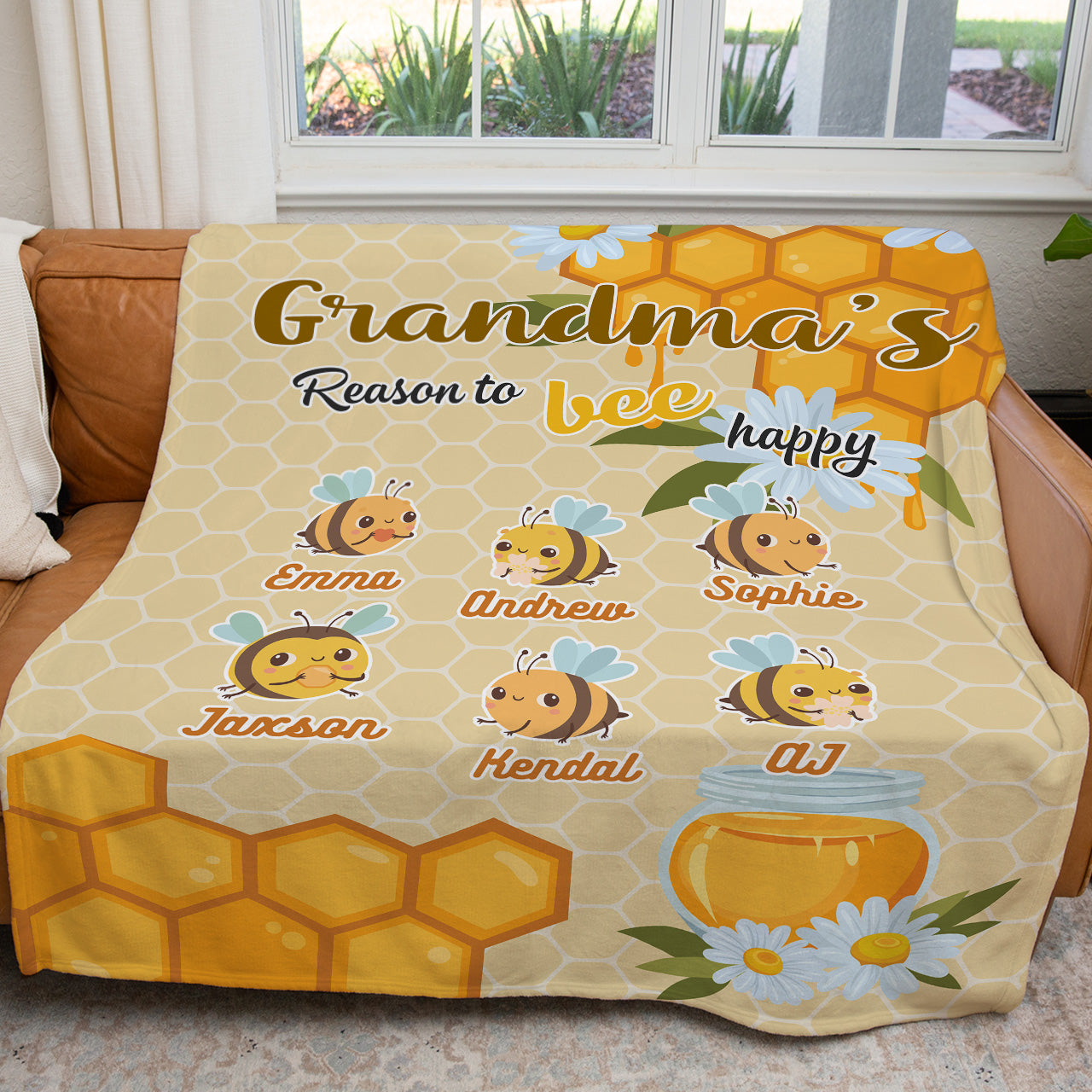 Blanket Gift Ideas for Bee Love Grandma, Reason To Bee Happy Grandma, Personalized Grandkids Name Blanket