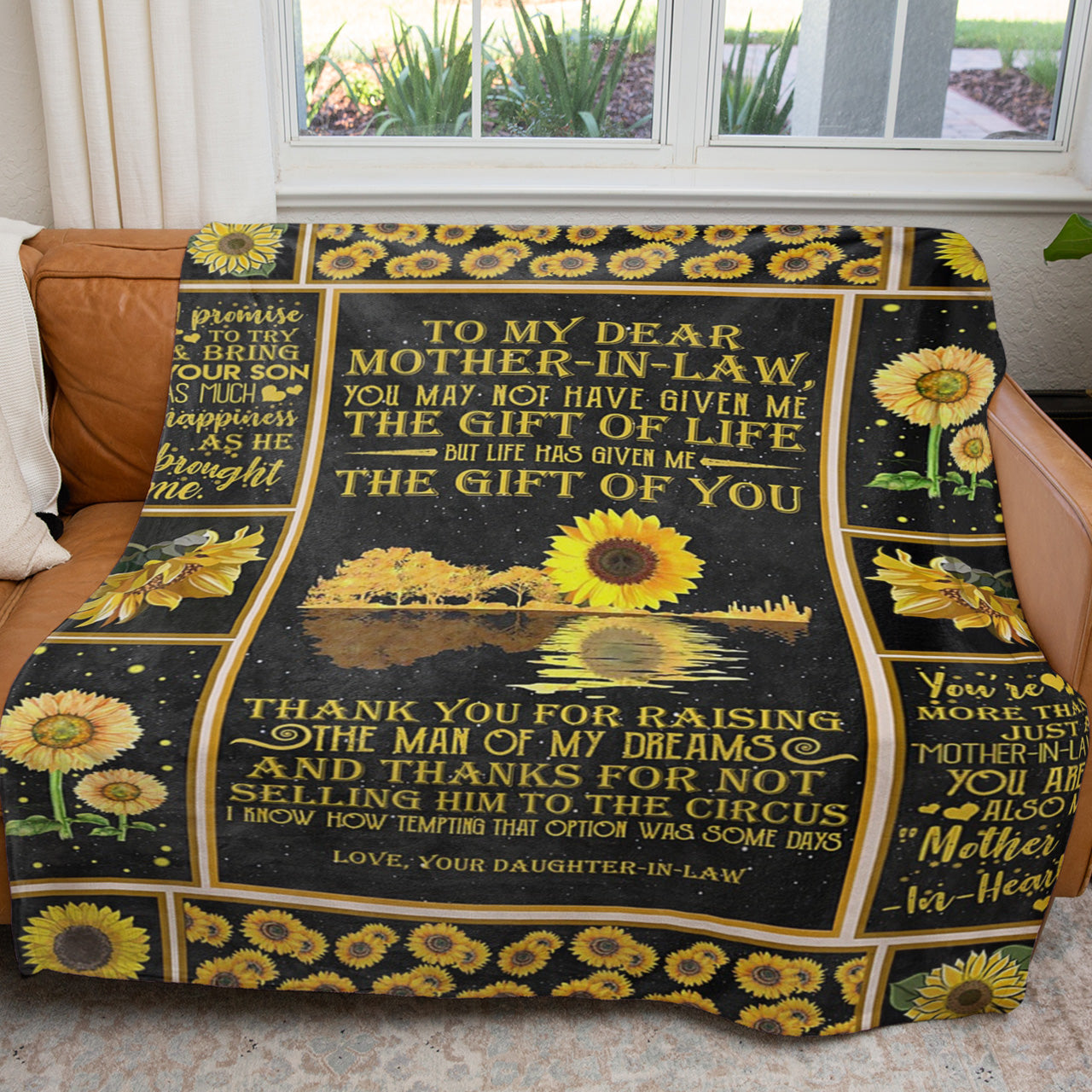 Sunflower Blanket Gift Ideas For Mother in Law, Life Has Given Me The Gift of You, My Mother in Heart Blanket