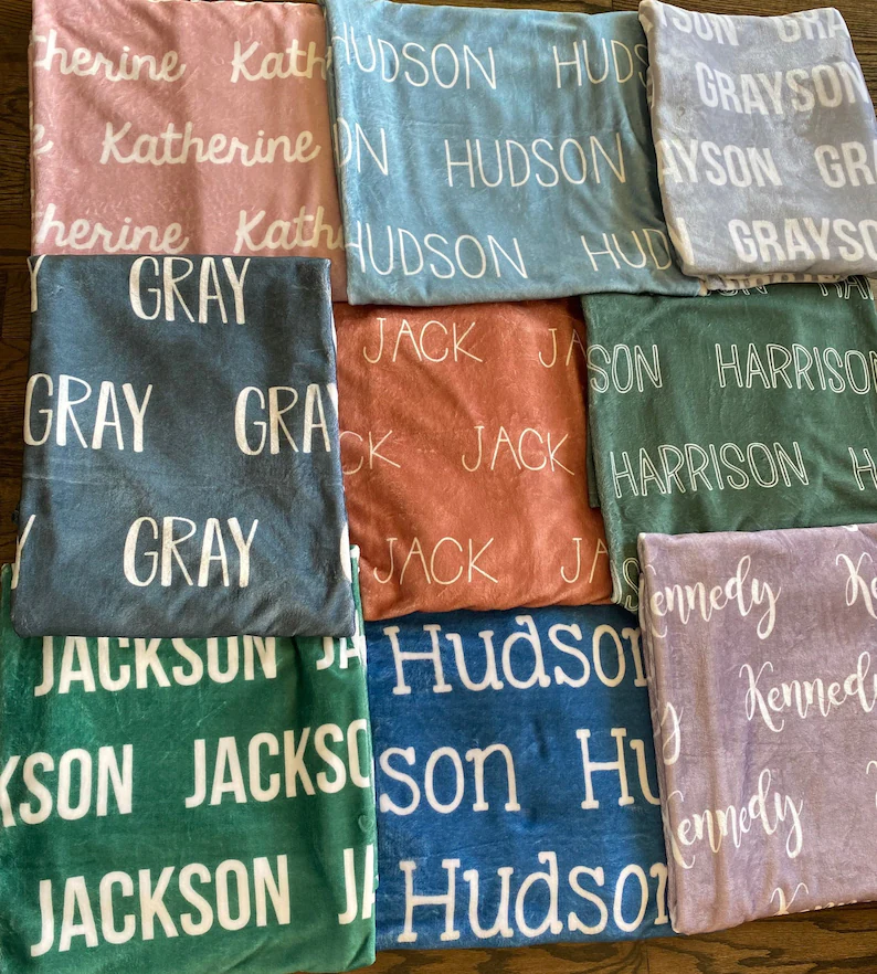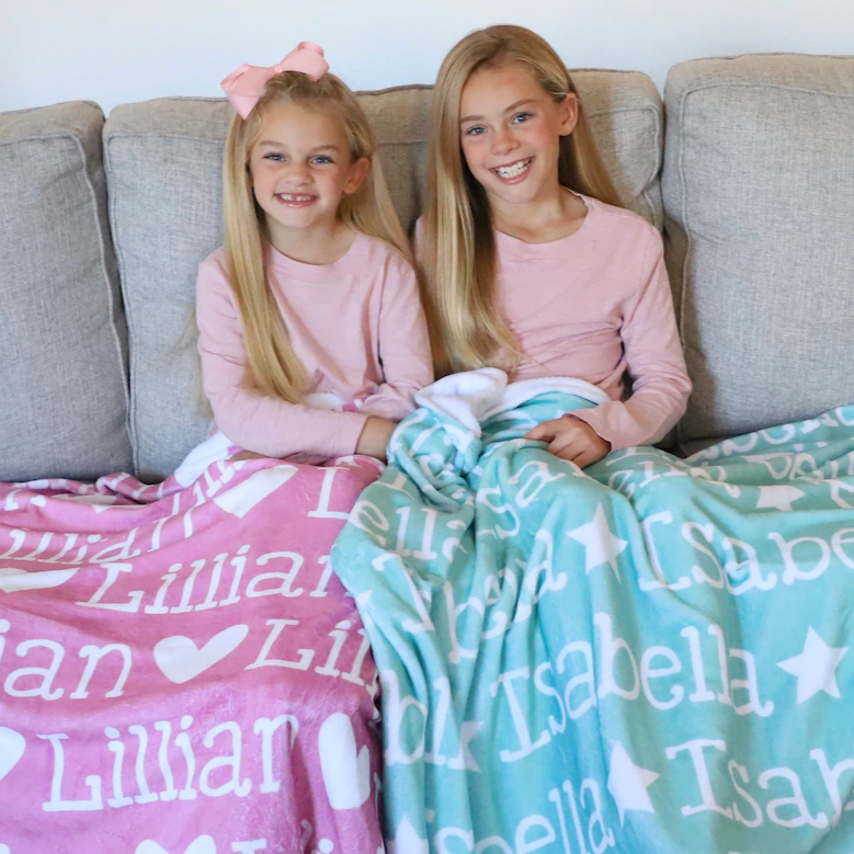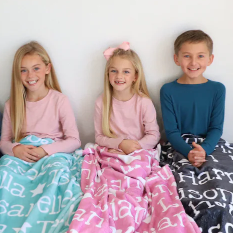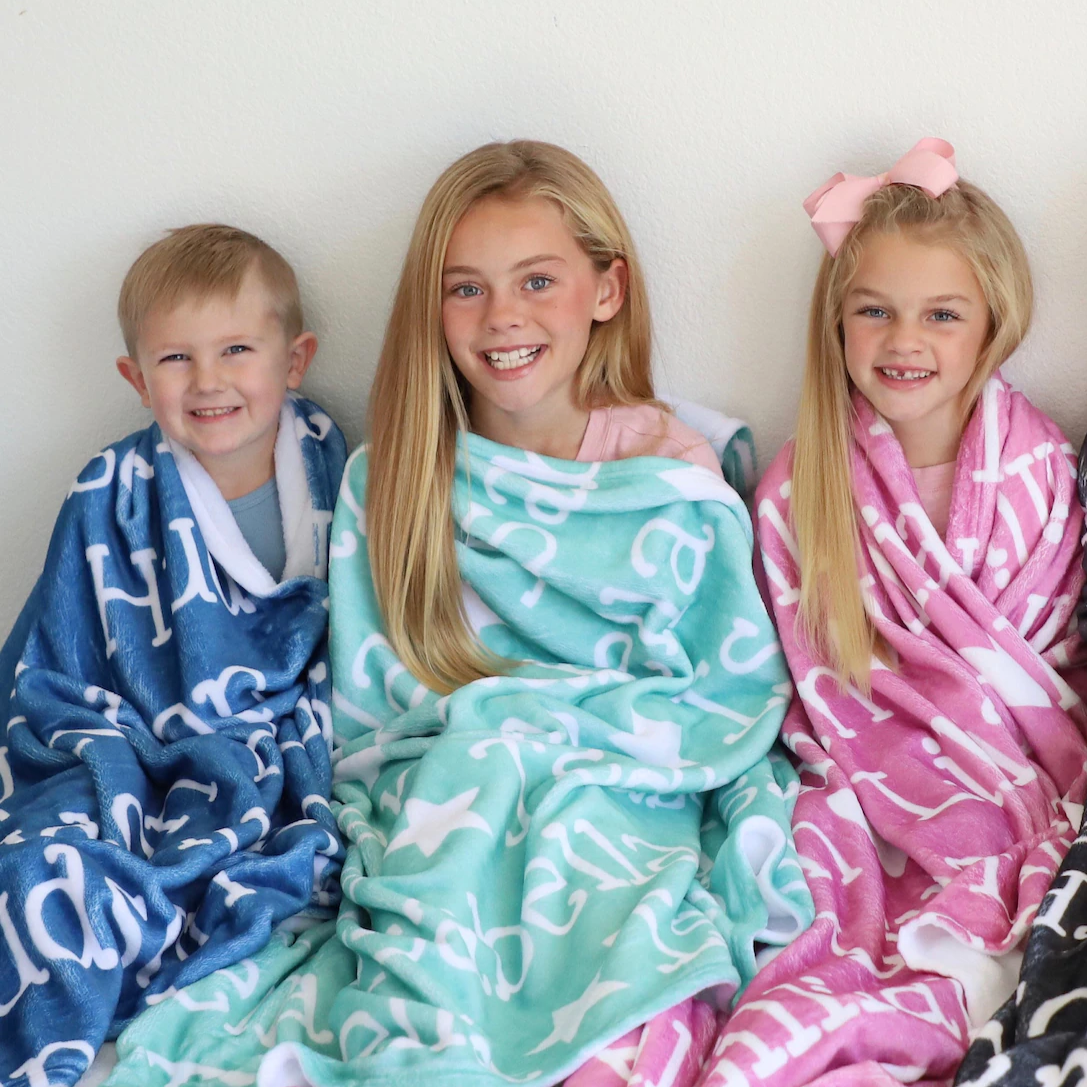 Monogram Personalized Names Blanket, Custom Kids Grandkids Name Blanket