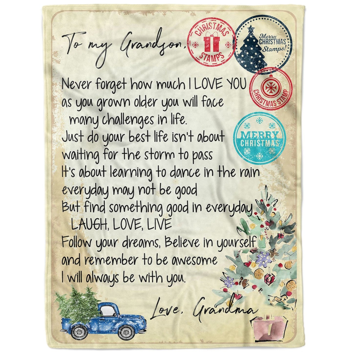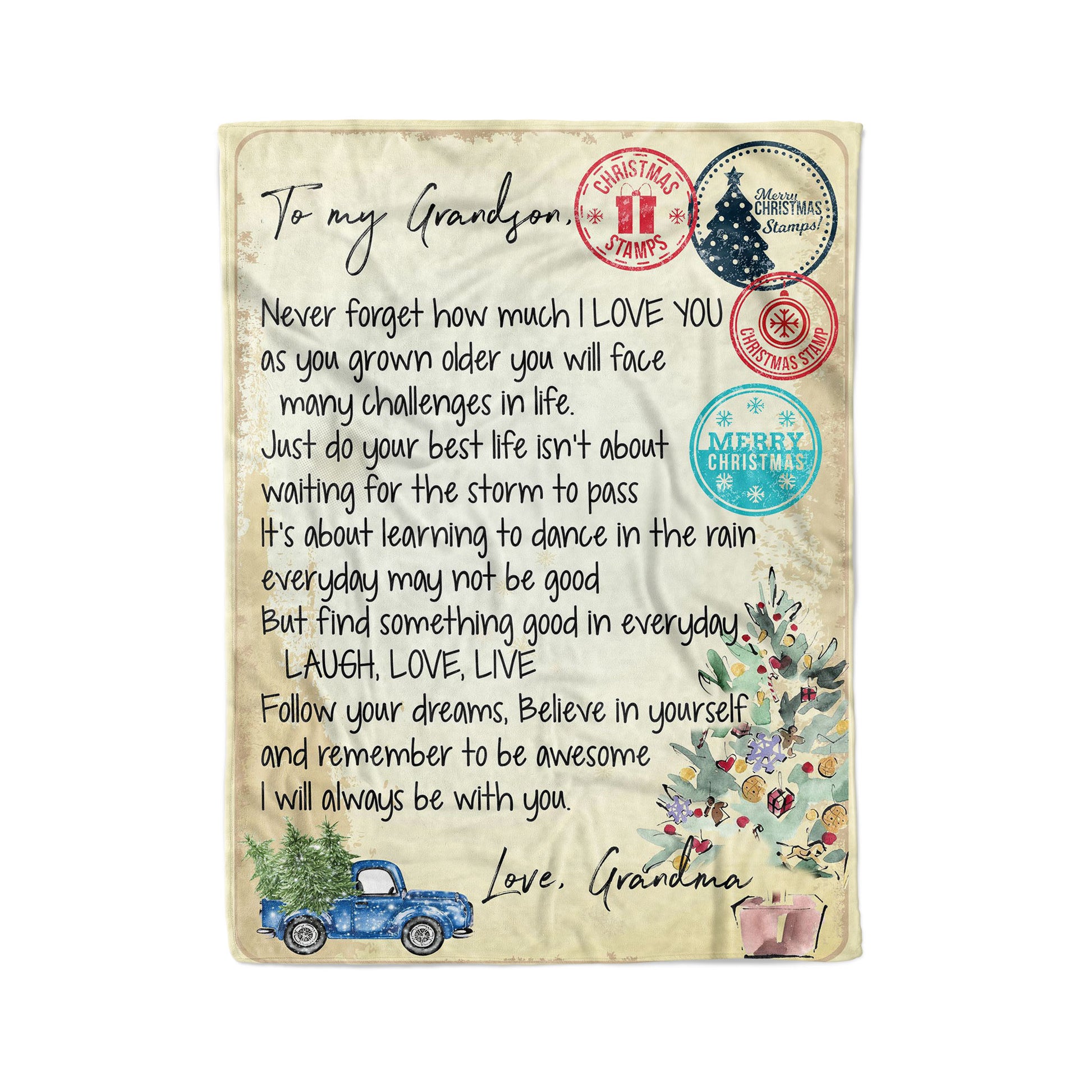 Blanket Christmas Gift For Grandson, Gifts For Grandson From Grandma, I Love You