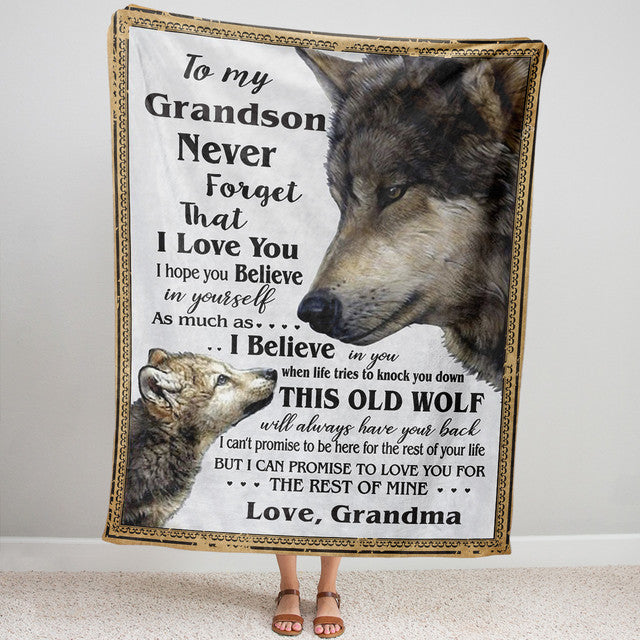Blanket Gift For Grandson, Personalized Gifts For Grandson, My Wolf