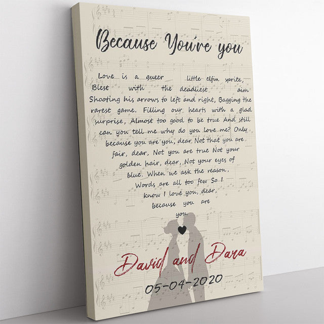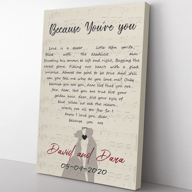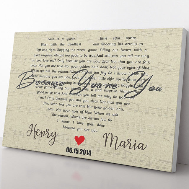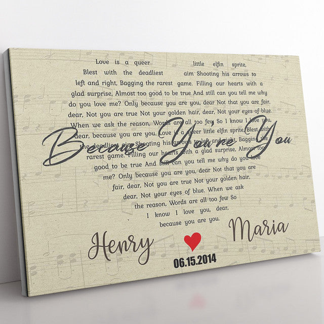 Personalized Canvas Gift For Her, First Dance Love Song Lyrics Heart