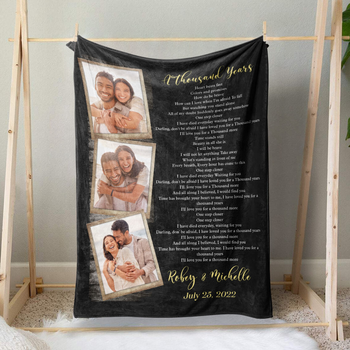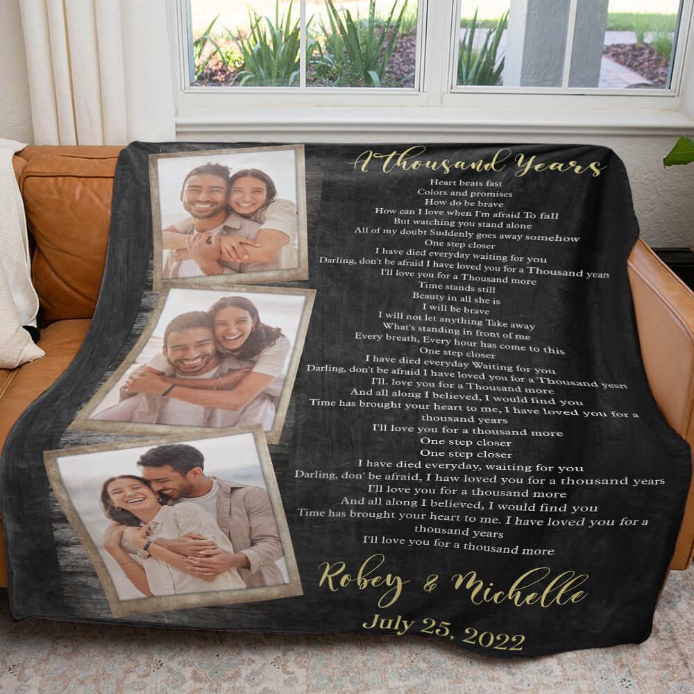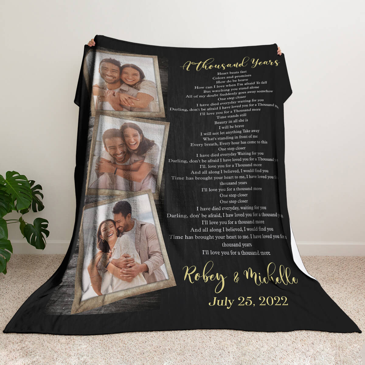 Custom Couple Photo Blanket, Love Song Lyrics Blanket
