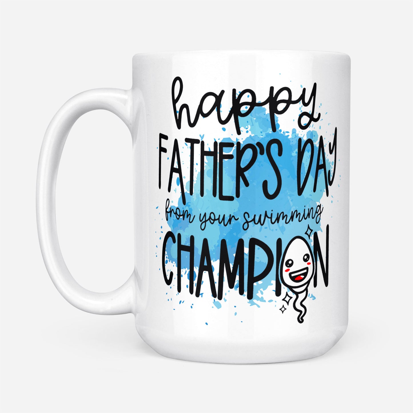 Happy Fathers Day From Your Swimming Champion Love Funny Personalized Gift Ideas for Dad Father DS White Mug