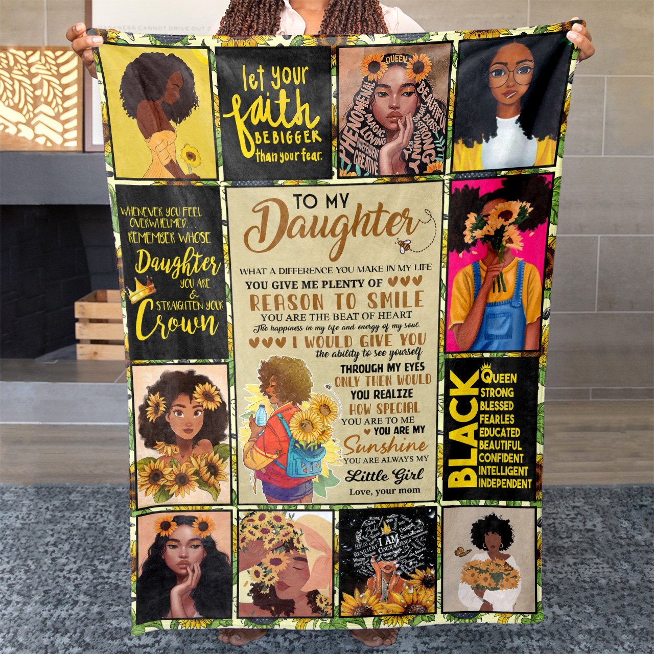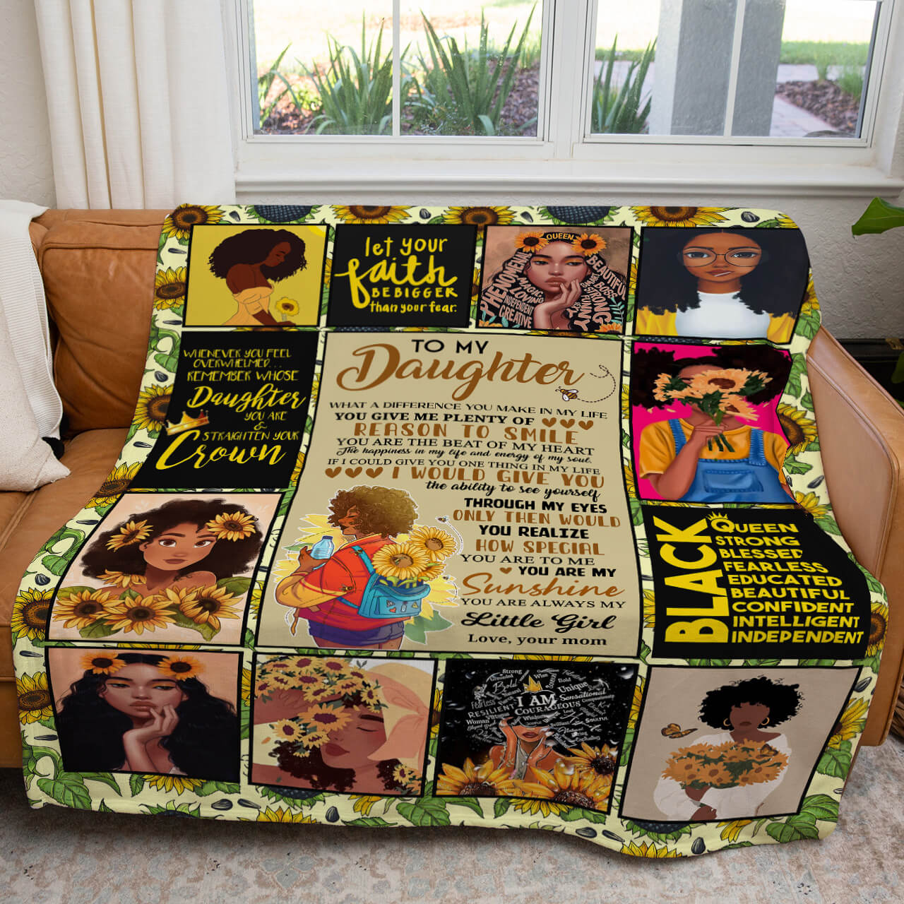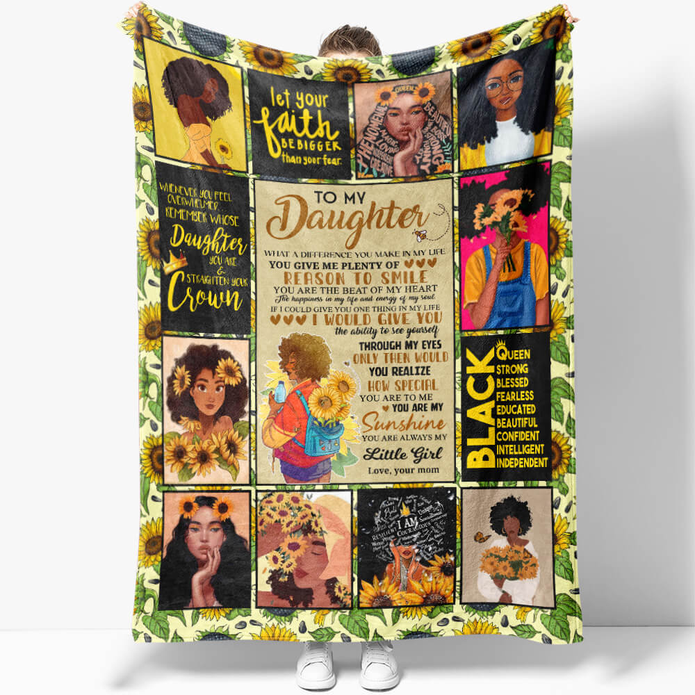 Sunflower Blanket Gift Ideas For Black Daughter, Black Strong Sunflower Blanket Gift Ideas