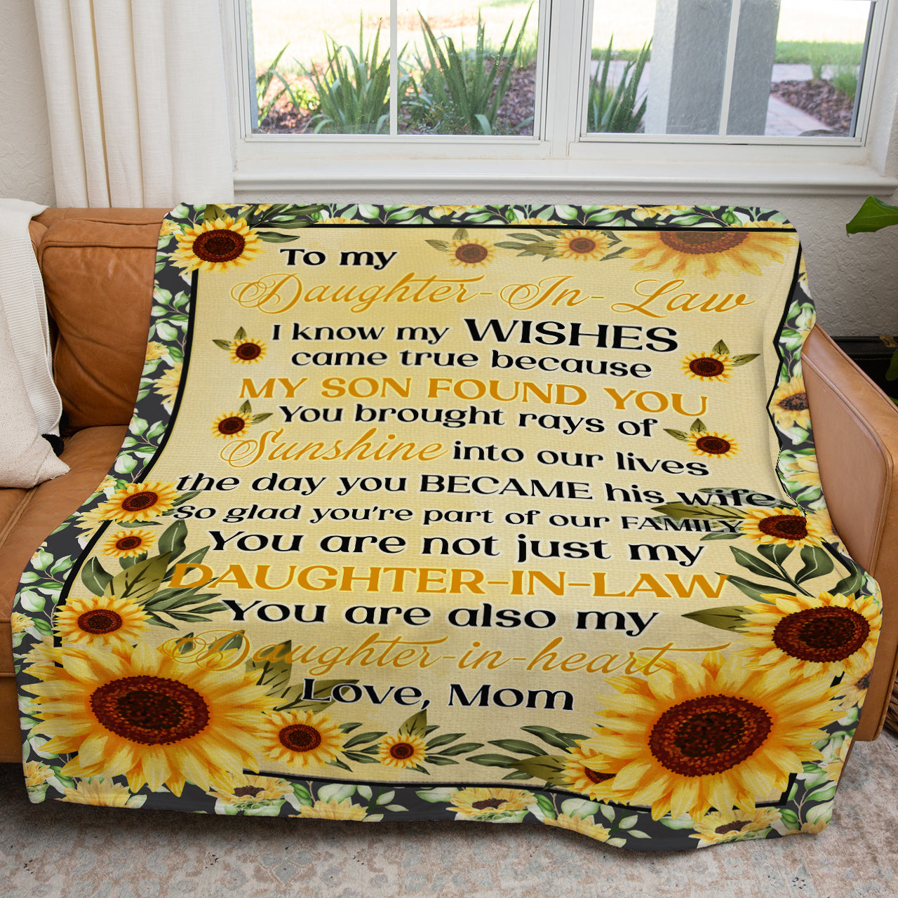 Sunflower Blanket To My Daughter in Law Gift, You Bring Rays of Sunshine into Our Lives Blanket from Mother in Law, Birthday Gift for Daughter in Law