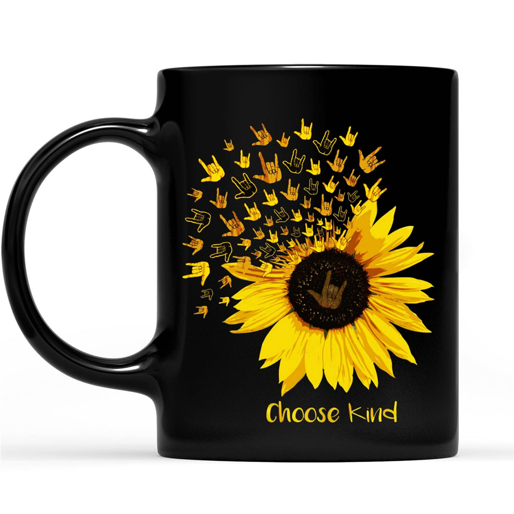 Choose Kind Sign Language Sunflower Design Hippie Love Gift Ideas - Coffee Black Mug
