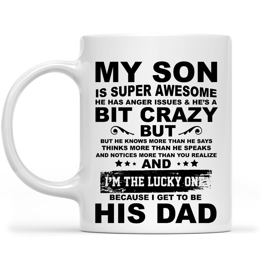 Gift Ideas for Dad Fathers Day My Son Is Super Awesome He Has Anger Issues He's A Bit Crazy - Coffee White Mug