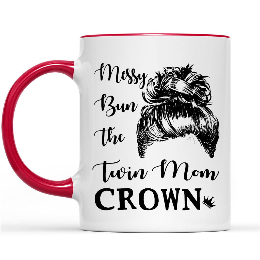 Gift Ideas for Mom Mothers Day Messy Bun The Twin Mom Crown - 11oz Red Mug
