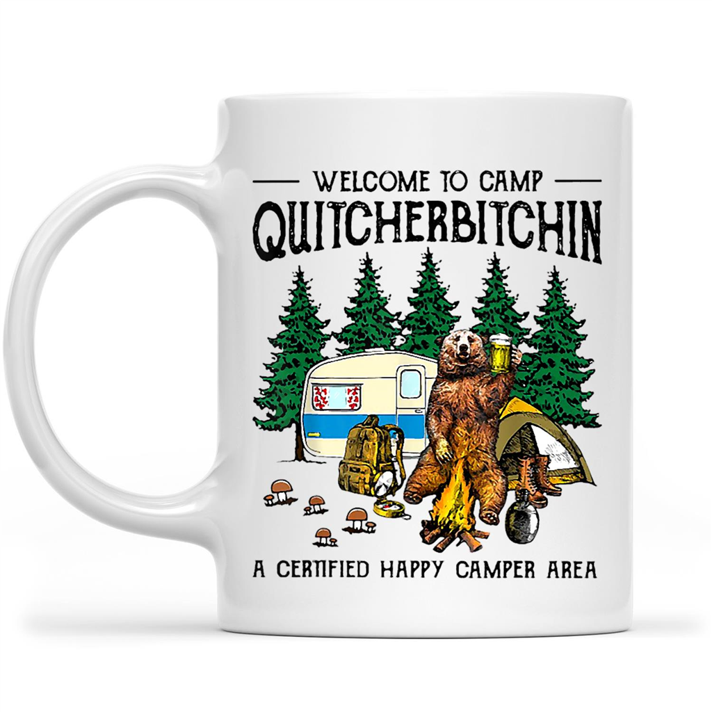 Welcome To Camp Quitcherbitchin A Certified Bear Drink Beer Funny Camping Gift Ideas - Coffee White Mug
