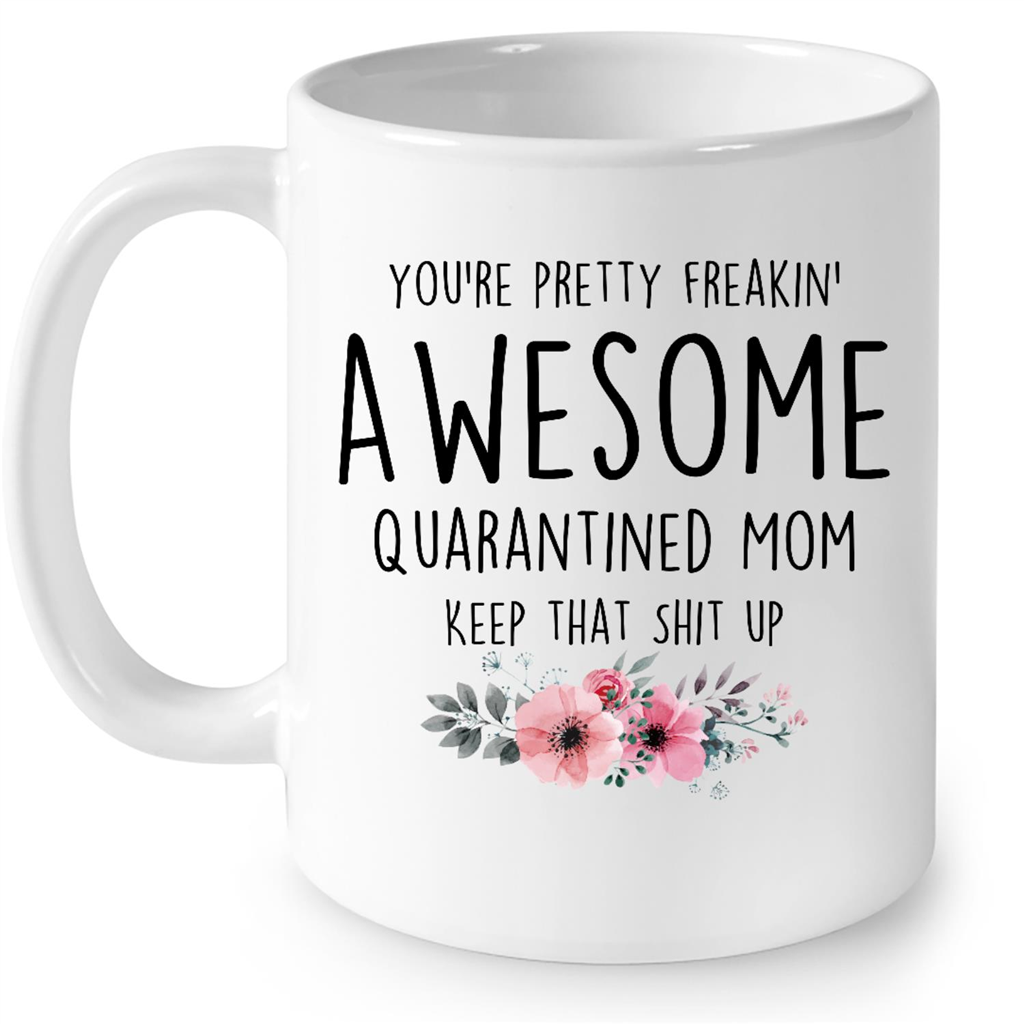 You Are Pretty Freakin Awesome Quarantined Mom Keep That Shit Up Flower Gift Ideas For Mom in Mothers Day B - Coffee White Mug