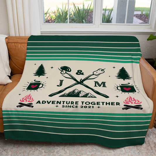 Personalized Blanket Couples Camping Initials Mountain Inspired Anniversary Gift