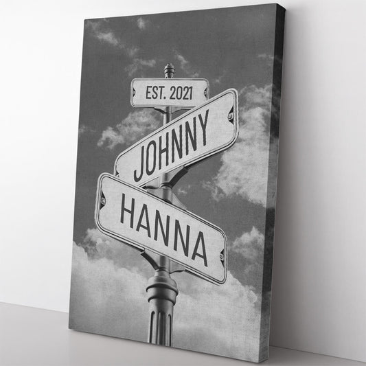 Intersection Street Signs Custom Names and Year Canvas Wall Art, Wedding Anniversary Gift for Couple